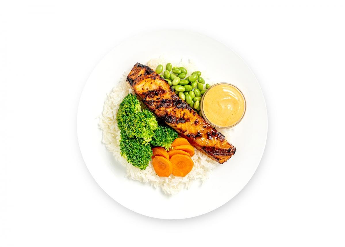 Savor our “Grilled Spicy Salmon Bowl”, featuring with Mixed Vegetables, Rice, and Ponzu-Sriracha Aioli. Created by Chef Kristy Flores, it boasts an impressive 4.47-star rating and around 870 kcal per serving.. Please note it contains or may contain: Soybeans, Cereals Containing Gluten, Fish, Wheat, Eggs